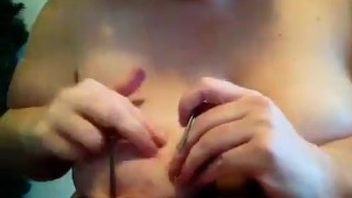 Slave nailing own tit to a board MD