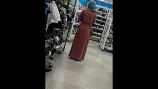 Pantieless Muslim Girl Jiggling Her Ass in public wearing hijab