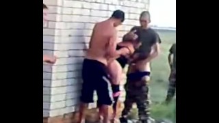 Russian Army Guys Fuck a Hoe Outdoors.